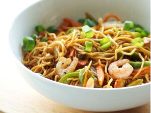 Praženi Rezanci z Rakci ali Piščancem (Chow Mein)