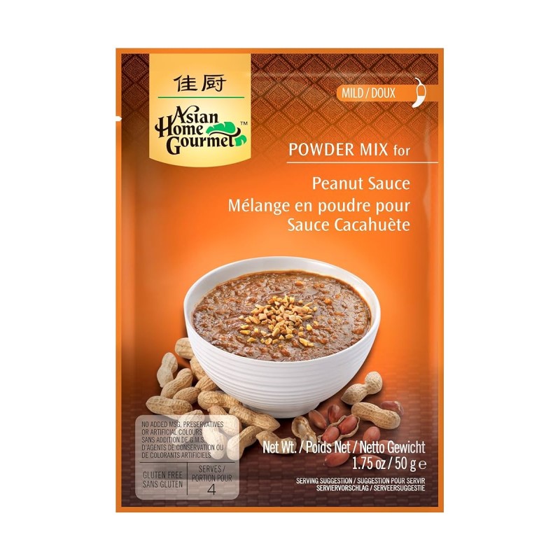 SESTAVINE: mleti arašidi 43 % (arašidi, antioksidant: E306), sladkor, sirotka v prahu (mleko), šalotka, sol, čili, česen, limonska trava, sredstvo proti sprijemanju: E551 (nano), kozice v prahu (raki), barvilo: E160c, galangal, sredstvo za uravnavanje kislosti: E330.
