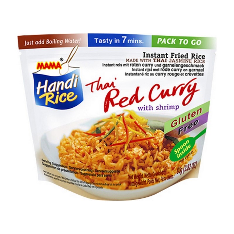 SESTAVINE: dehidrirani jasminov riž 74 %, olje riževih otrobov, začimbe (šalotka, česen, limonska trava, galangal, koriander, kitajski ingver, listi kombave, poper, kumin), sladkor, posušeno korenje, posušeni rakci 3,5 %, sol, ojačevalci okusa: E621; E635, kokosova smetana v prahu (izvleček kokosa, glukozni sirup, natrijev kazeinat (mleko), sredstvo za uravnavanje kislosti: E340(i), sredstvo proti strjevanju: E551), rdeči čili 0,63 %, aroma (soja), smetana v prahu (glukozni sirup, popolnoma hidrogenirano olje palmine koščice, natrijev kazeinat (mleko)).