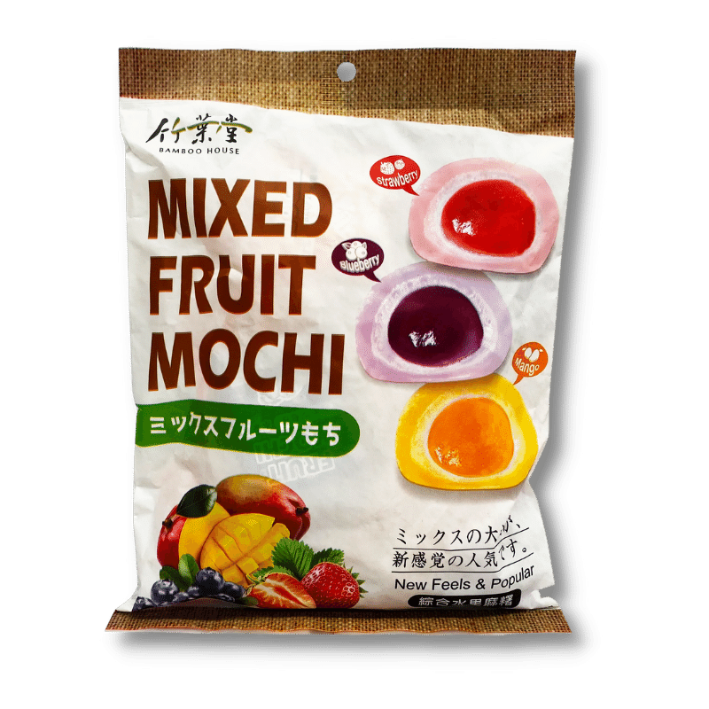 Mangovi moči: maltoza, sladkor, lepljivi riž v prahu, palmino olje, želatina, mangov sok, sredstva za zgostitev: E1442, E440, barvilo: E160a, sladilo: E420, aroma manga, konzervans: E202. / Povprečna hranilna vrednost na 100 g izdelka: