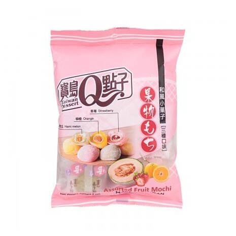SESTAVINE: maltoza, sladkor, lepljivi riž, sredstvo za zgostitev: E1442, jagoda 5,8%, pomaranča 5,8%, melona 5,8%, zimska melona 4,9%, trehaloza, sorbitol, maslo, palmovo olje, želatina, aroma, barvili: E162, E160a, špinača v prahu, emulgator: E471, konzervans: E202.