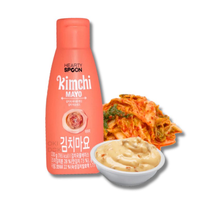 SESTAVINE: sojino olje 62%, voda 20%, pasta iz korejskega rdečega čilija 4% (škrobni sirup, voda, pšenična moka, korejski rdeči čili, želirana pšenica v prahu, sol, etilni alkohol, hidrolizirane pšenične beljakovine, žitni slad, sojina zrna), beli kis 5% (voda, etilni alkohol), jajčni rumenjak 1 (soljeni jajčni rumenjak) 2%, sladkor, kimči jušna osnova 1% (začinjeni kimči (kimči, koruzni sirup, česen, ingver), sladkor v prahu, sol, maltodekstrin, česen v prahu, čebula v prahu, sredstvo za uravnavanje kislosti: E330, aroma), jajčni rumenjak 2, sol, škrobni sirup, modificirani škrob, izvleček kvasa v prahu, zgoščevalec: E415, barvilo: E160c.