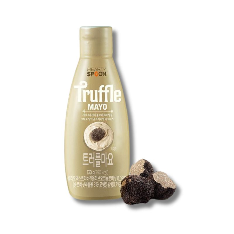 SESTAVINE: sojino olje 69%, voda 19%, začimba 5% (sladkor, sol, izvleček sladu, modificirani tapiokin škrob, ojačevalec arome: E621, sojina omaka v prahu, izvleček kvasa v prahu, zgoščevalec: E415), beli kis 3% (voda, etanol), jajčni rumenjak 1 (soljeni jajčni rumenjak) 2%, jajčni rumenjak 2 (jajčni rumenjak, sol) 1%, olje z aromo tartufov, mleti črni poper, ekstra deviško oljčno olje s tartufi (ekstra deviško oljčno olje, izvleček tartufov).