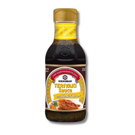 SESTAVINE: sojina omaka (voda, sojina zrna, pšenica, sol), sladkor, voda, sezamovo seme 1,6 %, modificirani škrob, alkoholni kis, česen v prahu, črni poper, sol, izvleček paprike.