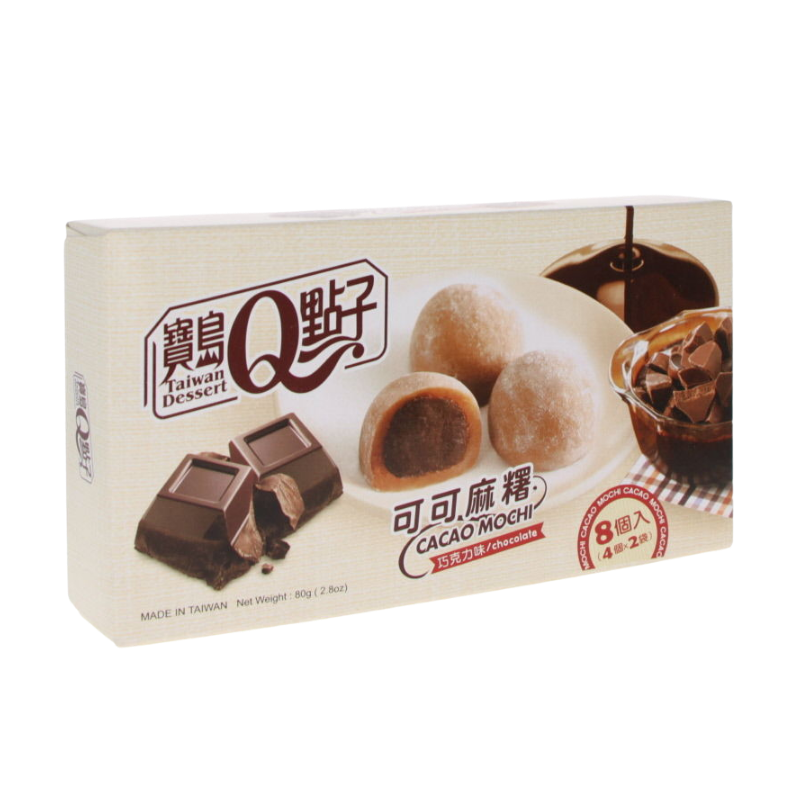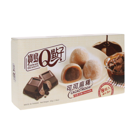 SESTAVINE: maltoza, sladkor, nadev 21% (palmino olje, sojino olje, sladkor, kakav v prahu 15%, kakavova masa, polnomastno mleko v prahu, laktoza (mleko), emulgator: E471, E322 (soja), aroma, vanilin), lepljivi riž, sredstvo za zgostitev: E1442, trehaloza, palmino olje, emulgator: E471, sol, krompirjev škrob, aroma, konzervans: E202.