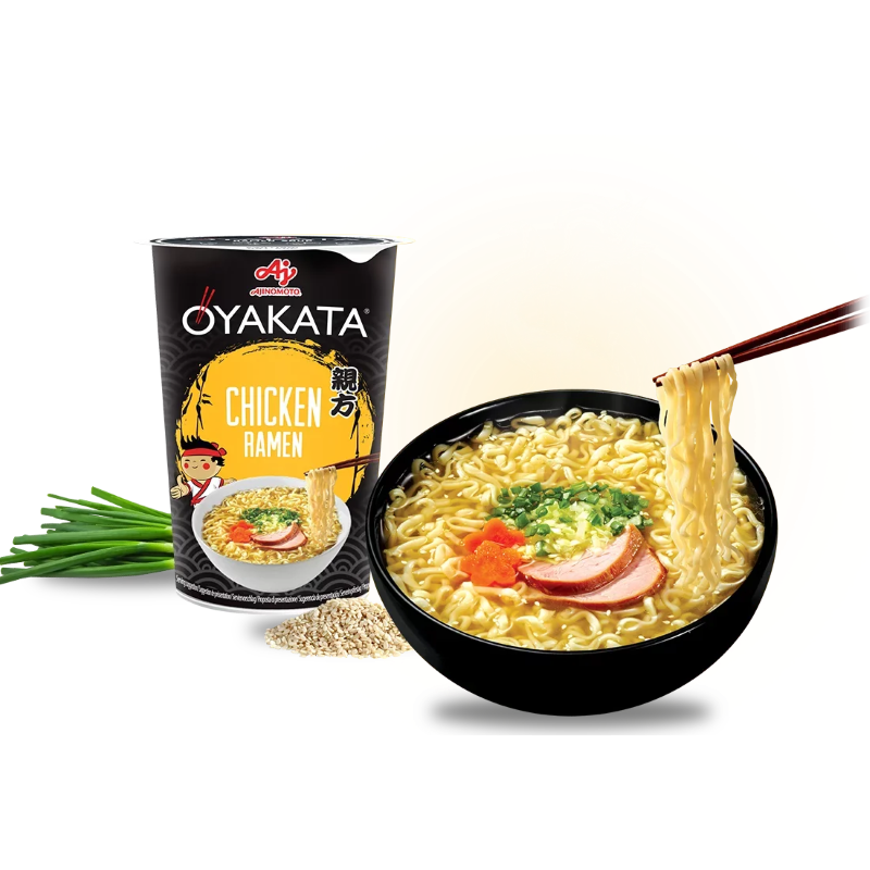 SESTAVINE: Rezanci (86%): pšenična moka, palmino olje, modificirani škrob, sol, sredstva za vzhajanje (natrijev karbonat, kalijev karbonat). Začimbe (9,2%): ojačevalca arome: E621, E635, sol, izvleček piščanca v prahu 14% (izvleček piščanca 45%, maltodekstrin, sol), aroma, maltodekstrin, sladkor, česen v prahu, sojina omaka v prahu (soja, pšenica, maltodekstrin, sol), izvleček kvasa, sezamova semena, piščančja maščoba 1,8%, ingver v prahu, posušeni drobnjak, črni poper, karamelizirani sladkor, sredstvo za uravnavanje kislosti: citronska kislina, barvilo: E100. Okras (4,8%): koruza, korenje, por.