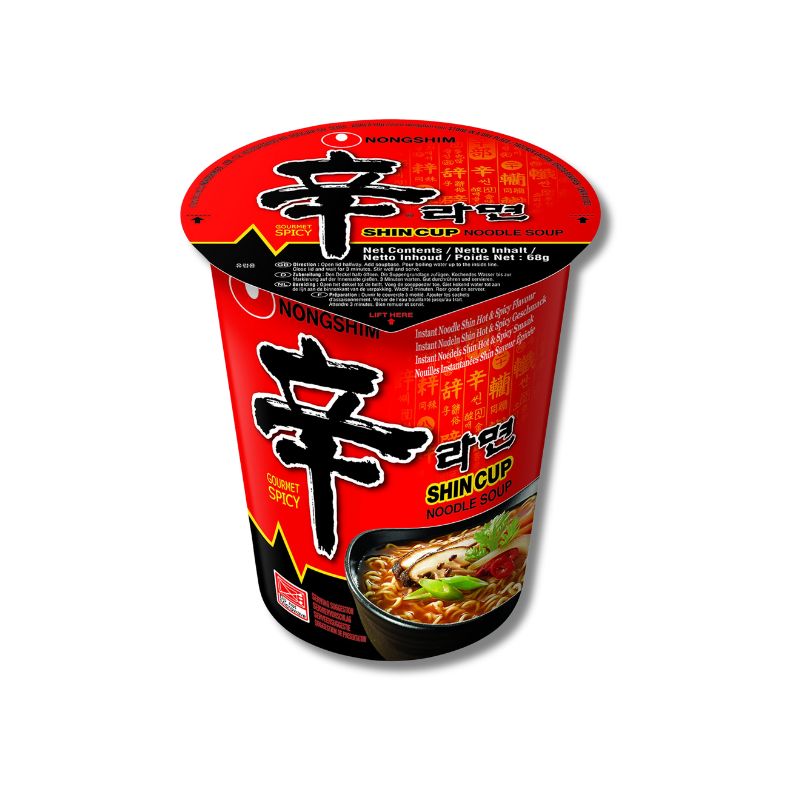 SESTAVINE: Rezanci 82%: pšenična moka, krompirjev škrob, palmovo olje, sol, sredstvo za uravnavanje kislosti: E501, E500, E339, antioksidant: E306, emulgator: E322 (vsebuje sojo), izvleček zelenega čaja, barvilo: E101. Začimbni prah 12%: začimba (hidrolizirane zelenjavne beljakovine (soja, koruza), maltodekstrin, sol, sladkor, rdeči čili, riba, pšenica), začimba (maltodekstrin, rdeči čili, glukoza, črni poper, koruzna moka), sladkor, sol, ojačevalci arome: E621, E627, E631, gobe šitake, sredstvo proti sprijemanju: E551. Zelenjavni kosmiči 6%: korenje, mlada čebula, gobe šitake, rdeči čili.