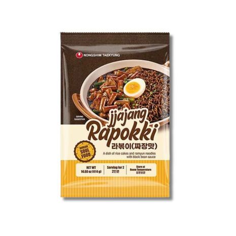 Jjajang omaka 22 %: voda, jjajang v prahu (jjajang v prahu (soja, pšenica, ojačevalec arome: E635, antioksidant: E306), barvilo: E150c, dekstrin, sladkor, ojačevalca arome: E621; E635, fruktoza, začimbni prah (sardele, soja, pšenica, sredstvo za uravnavanje kislosti: E270), česen v prahu, hidrolizirane zelenjavne beljakovine, aroma, sredstvo proti sprijemanju: E551, glicin, DL-alanin), omaka iz fermentirane soje (doenjang (soja, pšenica), pšenična moka, barvilo: E150c, soja, sol, pšenica, etanol, ojačevalec arome: E635, riževi otrobi), čebula, maltodekstrin, repično olje, sladkor, ojačevalca arome: E621; E635, modificirani škrob z visokim deležem fruktoze.