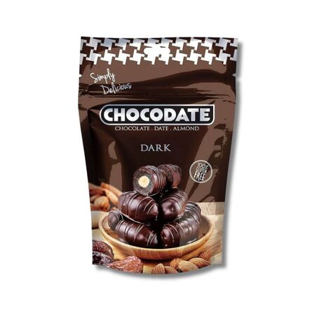 SESTAVINE: datlji 67 %, čokolada (sladkor, kakavova masa, kakavovo maslo, kakav v prahu, mlečna maščoba, emulgator: E476, E322 (soja), polnomastno mleko v prahu, naravna aroma vanilije), mandlji 9 %, sol. Kakavovi deli: najmanj 60 %.