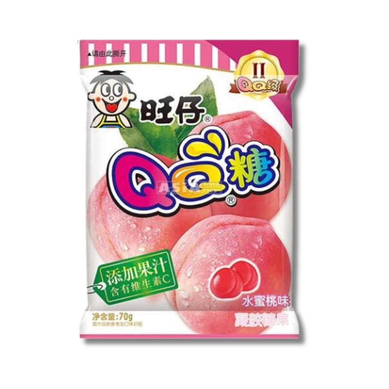 SESTAVINE: koruzni sirup, sladkor, želatina, glukoza, kislina: E330, E331, zgoščeni jabolčni sok, vlažilo: E420, aroma, zgoščevalec: E440, glazura (modificirano palmino olje, modificirano olje palmine koščice, glazirno sredstvo: E903), zgoščeni breskov sok 0,2 %, antioksidant: E300, barvilo: E129 (AZO barvila lahko neugodno učinkujejo na aktivnost in pozornost otrok.).