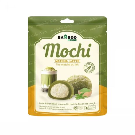 SESTAVINE: maltoza, polnilo (sojino olje, sladkor, mleko v prahu, palmino olje, laktoza, kakav v prahu, emulgator: E322 (soja), emulgator: E471, aroma), voda, emulgator: E1442, trehaloza, lepljivi riž v prahu, glukoza, rafinirano kokosovo olje, polidekstroza E1200, maltodekstrin, krompirjev škrob, matcha v prahu, aroma, emulgator: E471, zgoščevalec: E466, konzervans: E202.
