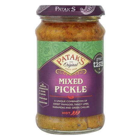 SESTAVINE: sadje 43% (mango, limeta, Carissa carandas), zelenjava 27% (korenje, zeleni čili), repično olje, sol, kislina (ocetna kislina), začimbe, semena komarčka, gorčica v prahu, strto gorčično seme, ajovanovo seme, seme grškega sena, seme kumina, seme črne kumine.
