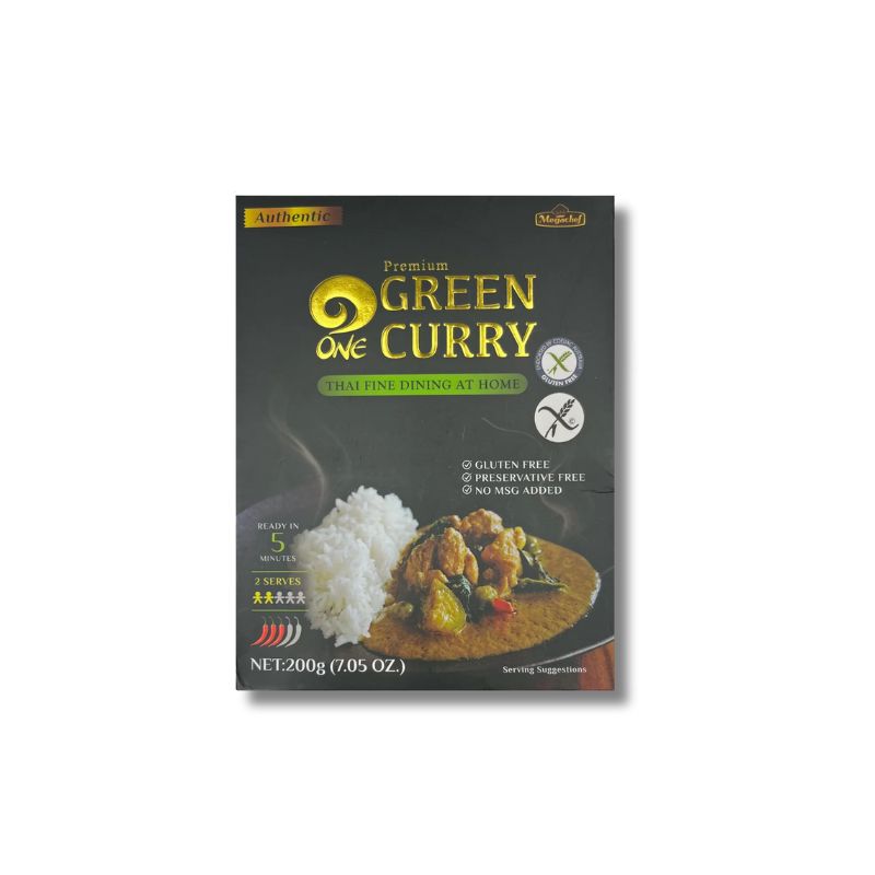 SESTAVINE: kokosovo mleko 67 %, zelena karijeva pasta 23 % (limonska trava, česen, šalotka, zeleni čili, galangal, tajski zeleni čili, sol, pasta iz kozic, kitajski ingver (krachai), koriandrova korenina, kombava), ribja omaka (inčuni, morska sol, sladkor), mešanica sladkorjev (trsni, kokosov sladkor).