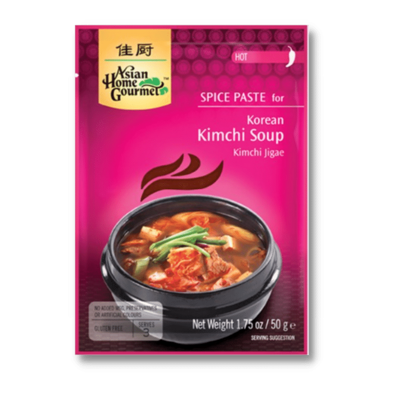 PRIPRAVA : V kozici zavremo 500 ml vode. Dodamo 1 manjšo narezano čebulo, 100 g kimčija ali narezanega kitajskega zelja ter vsebino vrečice. Zavremo in pustimo lahno vreti 5 minut. Okrasimo z narezano mlado čebulo in postrežemo še vroče.
