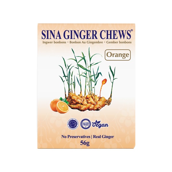 SESTAVINE: trsni sladkor, ingver 7%, tapiokin škrob, aroma pomaranče 1%, izvleček pomaranče 0,1%.